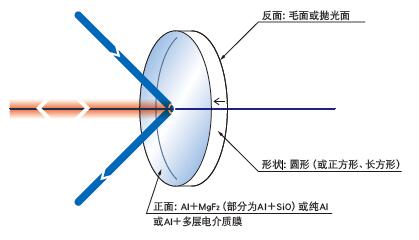 在高精度拋光的平面基板上蒸鍍鋁膜的反射鏡。在所有入射角度都具有高反射率。
