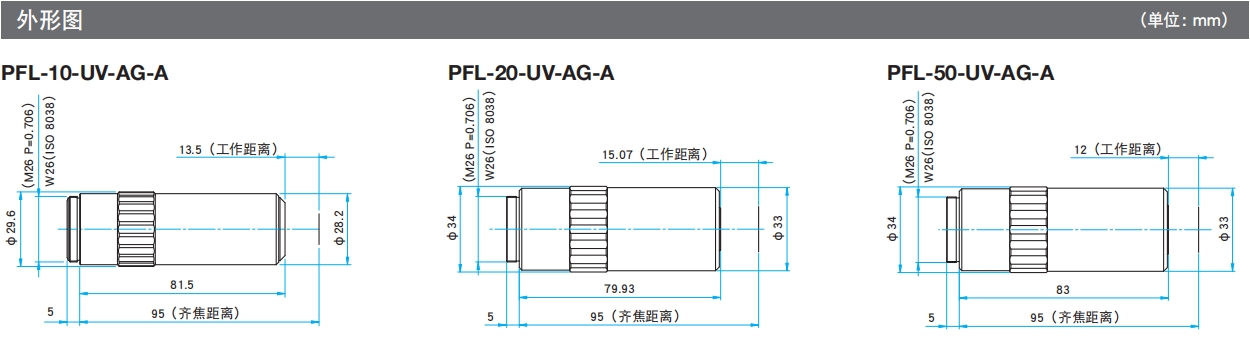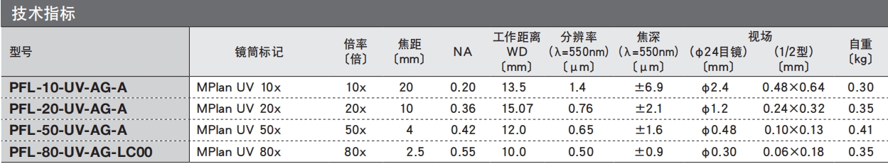 ?倍率為使用f=200mm管鏡時的數值。使用其他廠商生產的顯微鏡管鏡時倍率有可能不同。首先要確認使用成像管鏡的焦距,從管鏡焦距和物鏡焦距的比例來求出實際倍率。