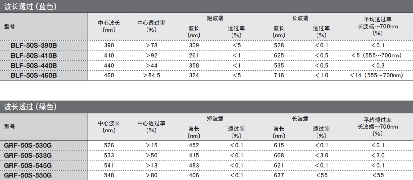 在藍(lán)色到綠色的波長(zhǎng)譜區(qū)使特定的波長(zhǎng)透過(guò),截止了可見(jiàn)光中其他波長(zhǎng)的濾光片。 用于從白光中取出藍(lán)色光或綠色光時(shí),或從多波長(zhǎng)光線中只取出特定波長(zhǎng)的光線時(shí)。