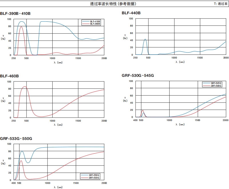 透過(guò)率波長(zhǎng)特性(參考數(shù)據(jù))
