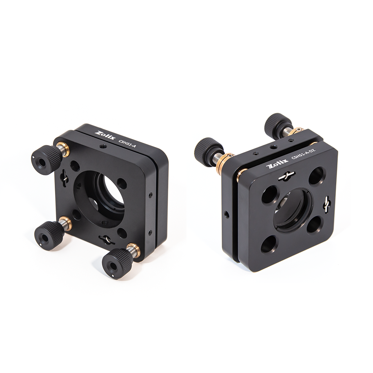 ZOLIX提供的籠式反射鏡架可兼容30mm籠式系統(tǒng)也可在自由空間中使用,并可提供左右手安裝,適用于Ø25.4mm的光學(xué)元件。中心安裝孔為SM1螺紋孔,孔內(nèi)附帶2個(gè)SM1卡環(huán)?;\桿連接通孔處各配有一個(gè)位于側(cè)面的鎖緊固定螺絲,可使用1.5mm六角扳手緊固,其CSHS1-A-DZ反射鏡架調(diào)節(jié)器提供鎖緊功能。