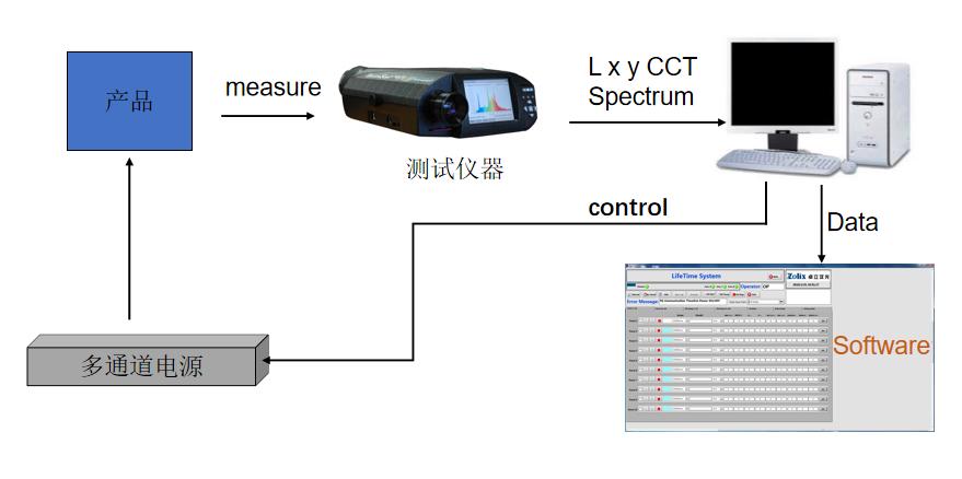該系統(tǒng)是集成亮度計、暗箱、高精度運動機構(gòu)、系統(tǒng)檢測軟件、多通道電源、CCD自動對位、工控機為一體的自動化檢測系統(tǒng),主要應(yīng)用于OLED加速老化壽命測試。