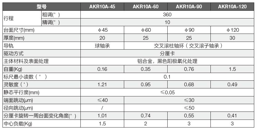 AKR 系列是卓立漢光開發(fā)的全新高精密手動旋轉滑臺。該系列旋轉滑臺具有大角度粗調和小角度精密調整兩種功能。采用分厘卡驅動,靈敏度高。交叉滾柱軸環(huán)保證了臺面在旋轉時,有很好的運動特性,端跳、徑跳等關鍵指標可達國際同類產(chǎn)品水平。尺寸較多,可以根據(jù)需要靈活選擇,AKR 系列產(chǎn)品適合于對于手動角度調整有較高要求的領域。