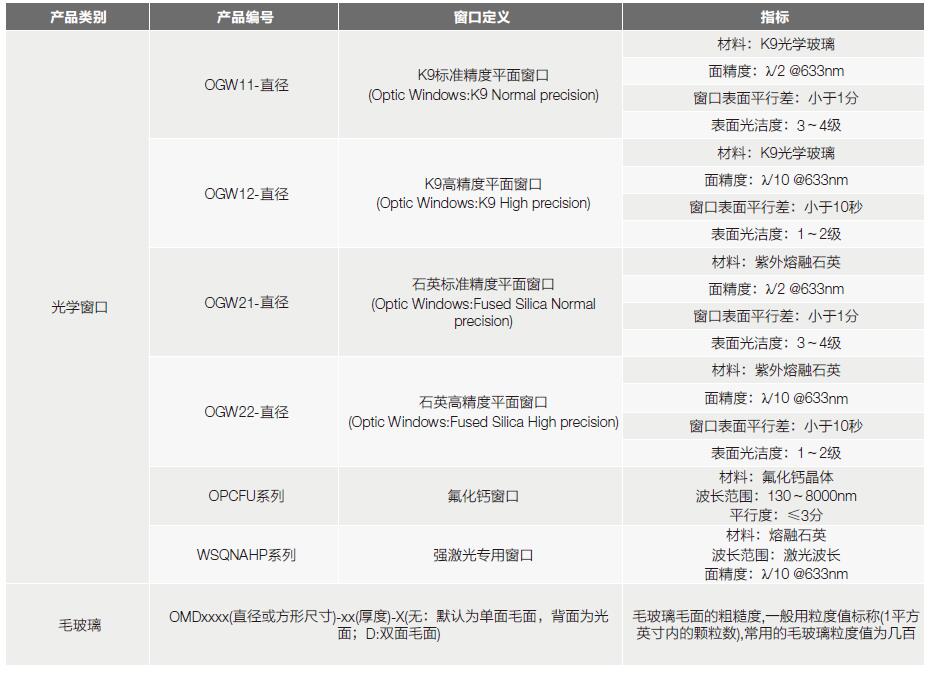 A. OGW11系列,K9玻璃,標準精度,平面窗口