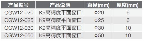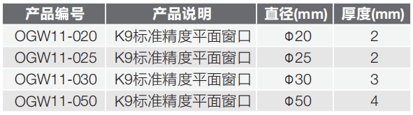 OGW11系列,K9玻璃,標準精度,平面窗口