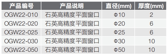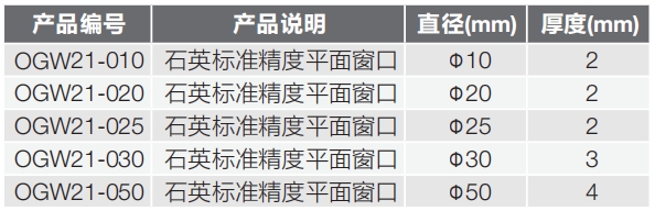 C. OGW21系列,紫外熔融石英,標準精度,平面窗口
