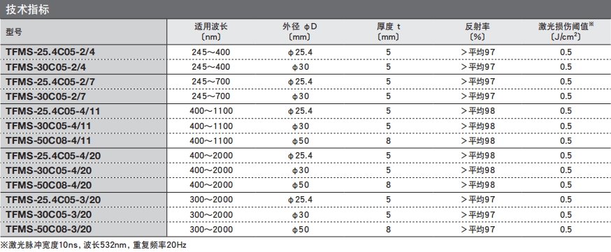 日本SIGMA KOKI超寬帶介質(zhì)膜反射鏡技術(shù)指標(biāo)