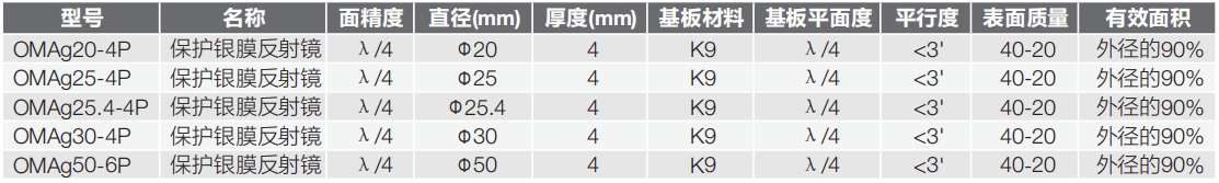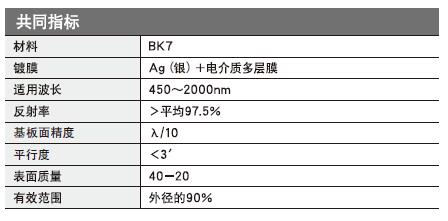日本SIGMA KOKI鍍銀膜反射鏡技術指標