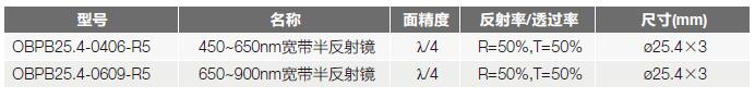 命名規(guī)則: OBPB直徑-波長1波長2(取微米數(shù))- Rx(反射率百分比代碼)