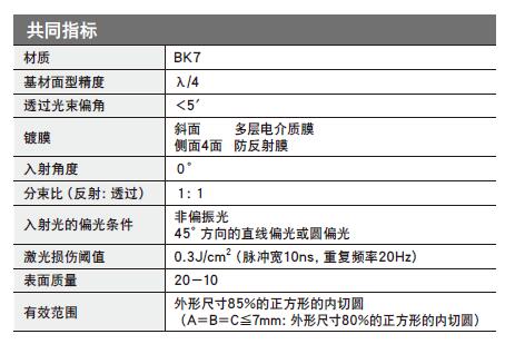 日本SIGMA KOKI紫外激光分束立方體共同指標