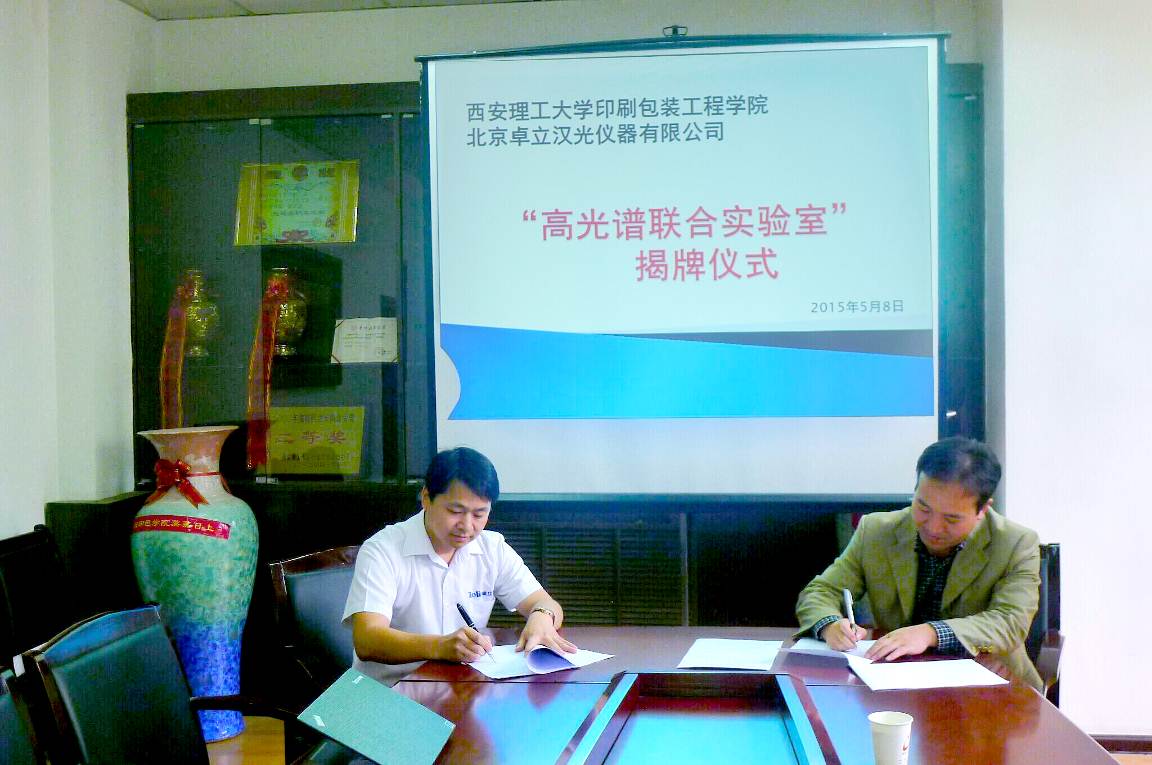 2015年5月8日上午,西安理工大學(xué)印刷包裝工程學(xué)院與北京卓立漢光儀器有限公司簽訂了“高光譜聯(lián)合實(shí)驗(yàn)室”建設(shè)合作協(xié)議并舉行了揭牌儀式。