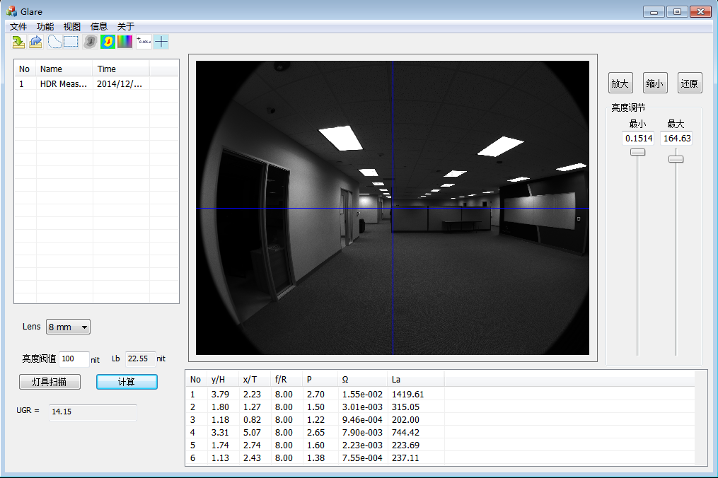 Glare眩光測量軟件現(xiàn)場測試數(shù)據(jù)