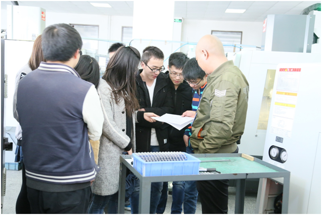 供應(yīng)部李遠(yuǎn)超工程師為學(xué)生詳細(xì)講解各種機(jī)加工設(shè)備的功能及用途。