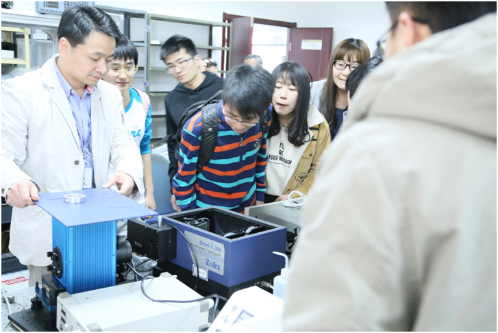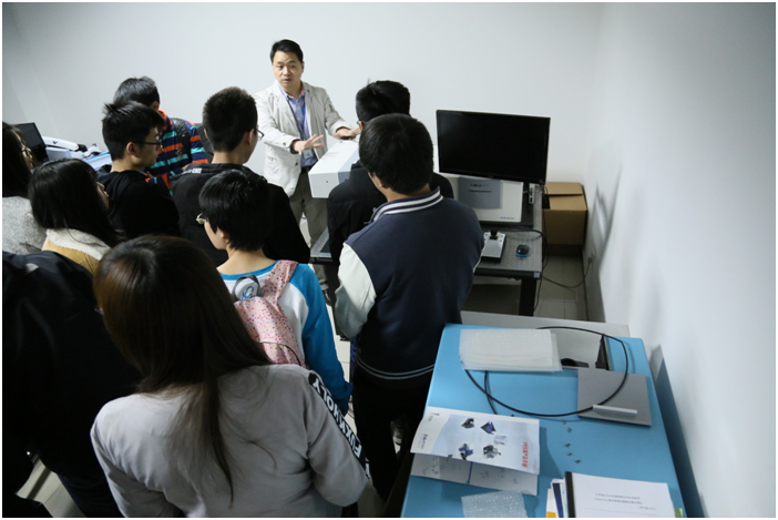 張恒總經(jīng)理為學(xué)生介紹熒光和拉曼光譜實(shí)驗(yàn)室并為學(xué)生們展示了我司