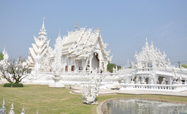 吃過(guò)早飯,我們?cè)趯?dǎo)游的帶領(lǐng)下前往泰國(guó)清萊府靈光寺。靈光寺又稱(chēng) “白廟”,此座寺廟是由泰國(guó)有名的藝術(shù)家大師查倫猜所建,獨(dú)具泰國(guó)風(fēng)格的白色建筑物徜徉在蔚藍(lán)的天空,堪稱(chēng)一件精美的藝術(shù)作品。