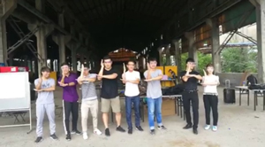 兩隊(duì)在演練隊(duì)伍的手勢和口號
