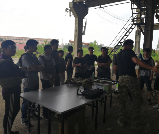在分組完成后,訓(xùn)練基地的工作人員給大家講解了槍械的使用方法,如何穿戴防彈背心,以及如何判定輸贏等比賽規(guī)則,大家都在激動著等待著比賽的即將開始。