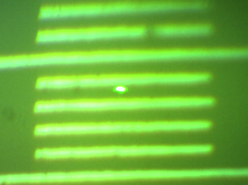 圖中圓形亮點為實際測試光斑,橫線為光柵尺,光柵間隔為10μm(@50倍物鏡)