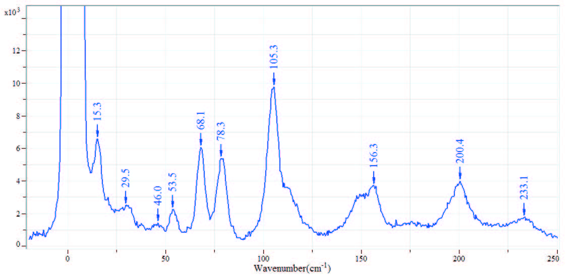 采用532nm 激光器實測樣品(L-Cystine),可準確測到低波數(shù)峰。