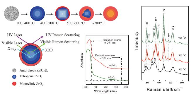 紫外拉曼光譜可以選擇性地得到在紫外區(qū)具有強吸收的物質(zhì)(例如TiO2 和ZrO2)的表面相信息。