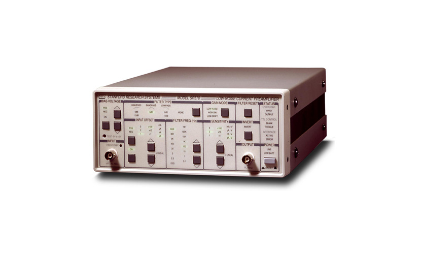 ZAMP 系列跨導(dǎo)放大器是低噪聲、高增益的跨導(dǎo)放大器(也稱電流- 電壓放大器),主要用途是將光電探測(cè)器的輸出信號(hào)(電流)轉(zhuǎn)換為電壓信號(hào)并按一定增益放大后輸出至其他測(cè)試或測(cè)量設(shè)備,如數(shù)據(jù)采集系統(tǒng)、示波器或數(shù)字萬用表。ZAMP 采用了超低輸入阻抗設(shè)計(jì),提供103~1010 共8 個(gè)檔位,可滿足與各類不同阻抗的光電探測(cè)器的直流電流信號(hào)放大。ZAMP 系列包含A 型和B 型兩個(gè)型號(hào),其中ZAMP-A 型僅采用電源適配器進(jìn)行供電,適合于需要長(zhǎng)時(shí)間連續(xù)工作的場(chǎng)合;ZAMP-B 型既可采用電源適配器供電,也可以采用隨機(jī)附帶的可充電電池供電,在使用可充電電池供電時(shí),可獲得更高的增益準(zhǔn)確度和信噪比。
