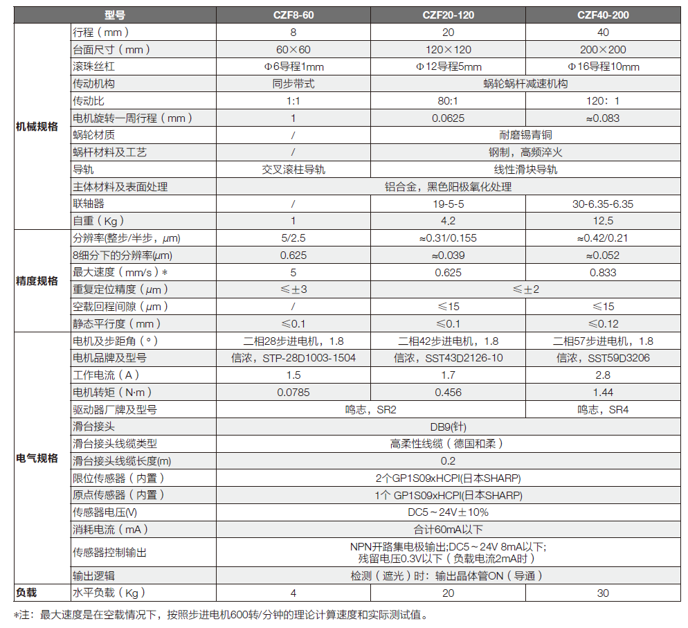 CZF系列高精密電動升降滑臺特點: