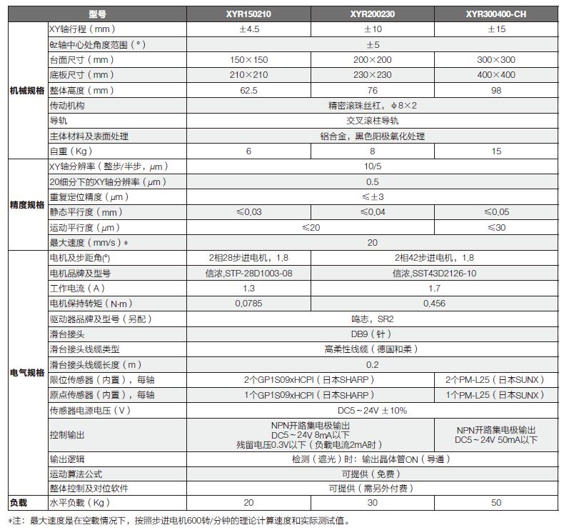 XYR系列對位平臺(tái)選型表: