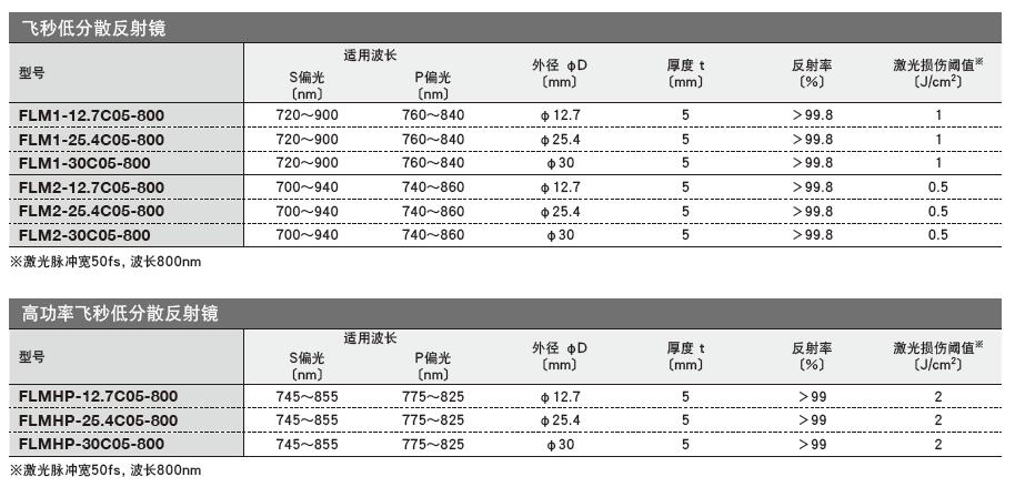 脈寬100fs以下的超短脈沖激光也能夠使用的波長(zhǎng)分散很小的激光反射鏡。