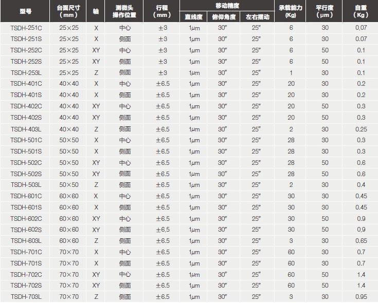 TSDH-平臺尺寸+軸的代碼+測微頭位置+測微頭類型+ YVAC2(更換真空油脂可選)