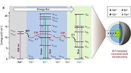 近日,華南理工大學(xué)發(fā)光材料與器件國家重點(diǎn)實(shí)驗(yàn)室周博教授團(tuán)隊(duì)提出了一種研究微觀尺度能量遷移過程的新策略。通過構(gòu)建界面能量傳遞IET(Interfacial Energy Transfer)調(diào)控的核殼納米結(jié)構(gòu)和能量輸運(yùn)過程設(shè)計(jì),成功觀測到敏化劑/激活劑共摻上轉(zhuǎn)換體系的能量遷移特性,并通過定義特征參量(γEM)描述了能量遷移和能量傳遞的競爭。