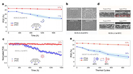 鈣鈦礦太陽能電池(PSCs)因其高效率和低成本而備受關(guān)注,但其長期穩(wěn)定性一直是制約商業(yè)化的主要瓶頸。特別是在高效率器件中,鈣鈦礦與基底的界面往往是結(jié)構(gòu)最脆弱的部分,容易在高溫和光照射下發(fā)生退化。近期,華東理工大學(xué)的科研團(tuán)隊(duì)在《Advanced Materials》期刊上發(fā)表了一項(xiàng)創(chuàng)新性研究成果,提出了一種通過多點(diǎn)和雙面錨定策略增強(qiáng)鈣鈦礦-基底界面穩(wěn)定性的方法。該研究開發(fā)了一種新型聚合物空穴傳輸層(HTIL)PTPY,通過在ITO基底和鈣鈦礦層之間形成強(qiáng)健的化學(xué)鍵合,顯著提升了器件的機(jī)械強(qiáng)度和電子質(zhì)量。實(shí)驗(yàn)結(jié)果顯示,基于PTPY的PSCs不僅實(shí)現(xiàn)了高達(dá)26.8%的光電轉(zhuǎn)換效率(PCE),而且在85°C的條件下經(jīng)過1500小時(shí)的最大功率點(diǎn)(MPP)跟蹤測試后,仍能保持初始效率的98%。這一成果為鈣鈦礦太陽能電池的穩(wěn)定性和效率提升提供了重要的理論和實(shí)驗(yàn)依據(jù)。